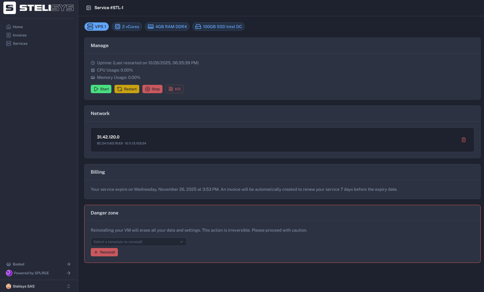 We developed our clientarea from the ground up to ensure it meets the specific needs of our users. This allows us to provide a seamless and efficient experience tailored to managing your hosting solutions.